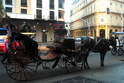 Lo más clásico de todos los clásicos, un magnífico coche de caballos que lo arrastrará en los años 50, pero no del siglo pasado, sino de los dos siglos antepasados. Los coches de caballos son uno de los medios de trasporte más antiguos de la historia y hoy en día aún circulan como atracción turística tanto en La Habana como en otras ciudades. |